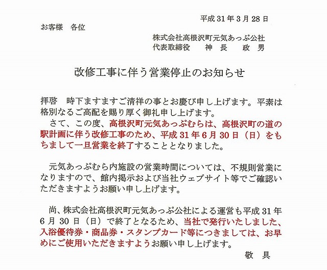 「すかっとランド九頭竜」は、新型コロナウイルスの影響で、2020年4月から休館していました。