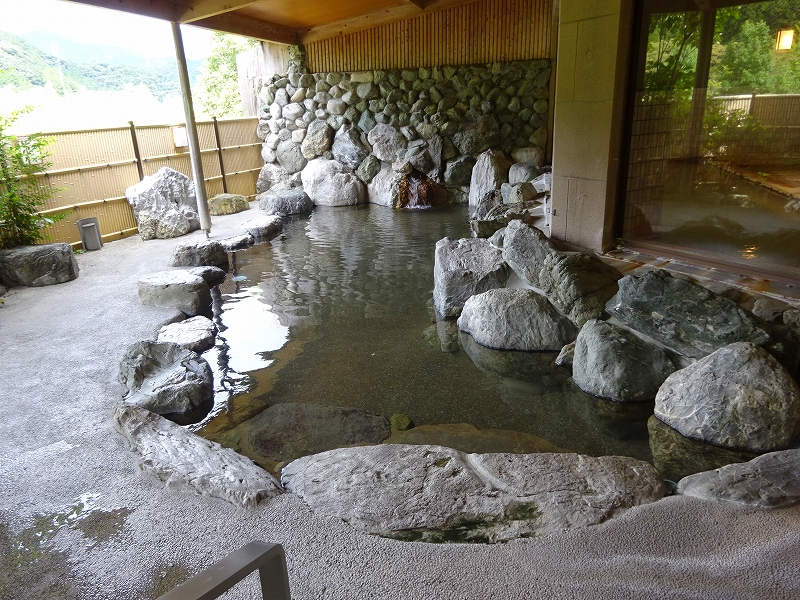 露天風呂は岩風呂と檜風呂の2つ、薄黄緑の温泉が注がれている。 温泉は加温されて41.5度位に調整されていて熱め。 壺湯は純米酒風呂となっていて、お酒は定期的に追加投入される。 施設内は所狭しと、土産物やゲーム機・ガチャポンが置かれており、ゆったり感はなく湯上がりに落ち着けない。 もう少しゆったりとした無駄な空間があれば、湯上がりに落ち着けるのだが。
