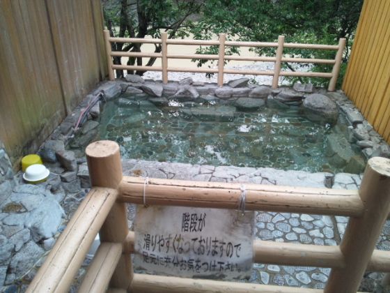 内風呂にも源泉が引かれていますが、飲用不可なので一部循環しているのではないでしょうか。 露天風呂は、2ヵ所あります。 小さめの湯船は、3号泉戸室の湯が掛け流されて、飲用もできます。 湯温は結構熱めです。 大きめの湯船は、2号泉医王の湯が掛け流されています。 こちらの湯船は広いので、自分の好みの温度の場所を探せます。 銭湯料金で楽しめるので、非常にお得です。