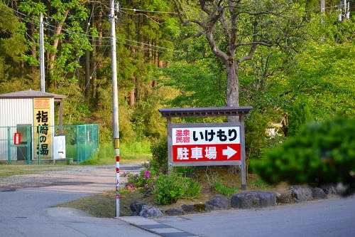 ゼンリン地図未整備(東電発電所前から温泉駐車場までの200m舗装道路が未記載)。 温泉の約500m東側の国道横に大きな看板があります。 案内に沿って近くの鉄橋を渡れば1本道の終点が温泉駐車場です。