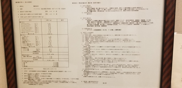露天風呂は岩風呂と檜風呂の2つ、薄黄緑の温泉が注がれている。 温泉は加温されて41.5度位に調整されていて熱め。 壺湯は純米酒風呂となっていて、お酒は定期的に追加投入される。 施設内は所狭しと、土産物やゲーム機・ガチャポンが置かれており、ゆったり感はなく湯上がりに落ち着けない。 もう少しゆったりとした無駄な空間があれば、湯上がりに落ち着けるのだが。