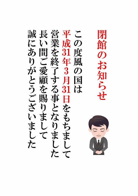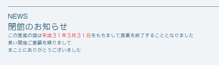 ホームページ上には「32年間にわたり、お客様よりご愛顧いただきましたが、当館は8月27日をもちまして閉館いたしました。誠にありがとうございました」と掲載されておりました。