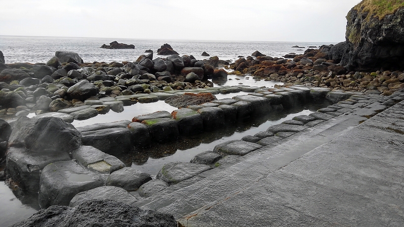 浴室は2階にあります。眺望を期待していたのですが、目隠しのために窓にはミラーフィルムが貼られており、紫がかった窓越しの風景で開放感はありません。 露天風呂へは階段を降りて向かいます。 露天風呂も2m程の高さの目隠しの為に開放感は全くありません。 泉質は強塩泉で、熱めに設定されていたので、良く温まりました。 地元のお年寄りの方が、多く訪れておりましたが、施設には階段が多く、新しい施設にしてはバリアフリーとは対局の施設となっていました。 洗い場も奥まった所に設置されており、熱気がこもっておりました。 カランの位置が異常に高く、足を洗おうと頭を下げると、カランに頭をぶつけてしまいました。 鏡下の石鹸おきスペースが狭く石鹸箱すら乗らない等、施設自体はなんとも使いでの悪いものですが、温泉自体はよいものでした。 少し離れた場所にある、足湯は浸かりながら海が眺められるとの事でしたが、この日は窓が曇ってしまっていて眺められませんでした。