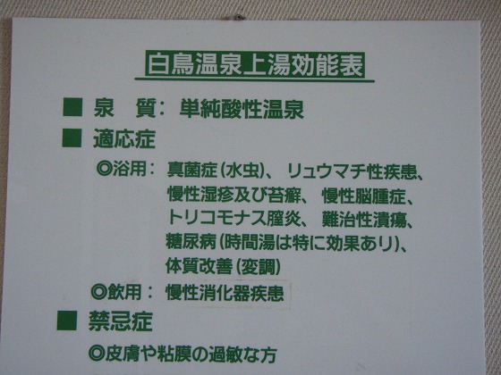 内湯の主浴槽は熱めの温泉。 露天風呂は時期により入浴剤が投入されている等、温泉の利用方法に疑問あり。 健康福祉センター・デイサービスセンターが併設されており、館内にはカラオケボックスやフィットネスジムまであり、夜11時までの営業と地域住民の為の総合施設