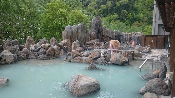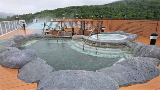 露天風呂は岩風呂と檜風呂の2つ、薄黄緑の温泉が注がれている。 温泉は加温されて41.5度位に調整されていて熱め。 壺湯は純米酒風呂となっていて、お酒は定期的に追加投入される。 施設内は所狭しと、土産物やゲーム機・ガチャポンが置かれており、ゆったり感はなく湯上がりに落ち着けない。 もう少しゆったりとした無駄な空間があれば、湯上がりに落ち着けるのだが。
