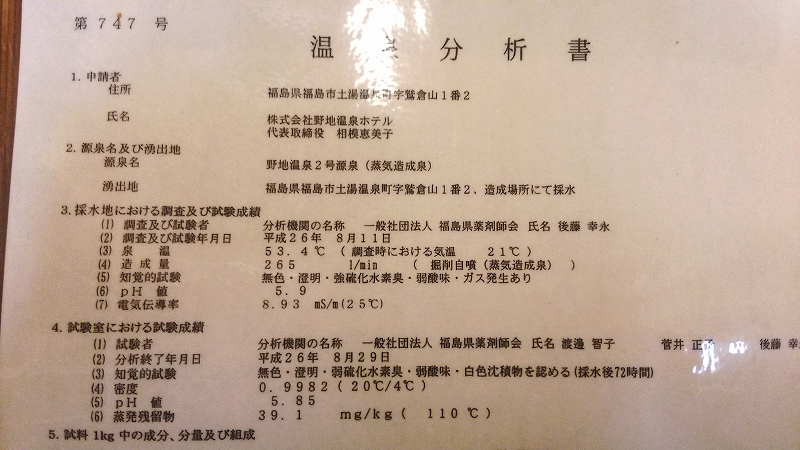 露天風呂は岩風呂と檜風呂の2つ、薄黄緑の温泉が注がれている。 温泉は加温されて41.5度位に調整されていて熱め。 壺湯は純米酒風呂となっていて、お酒は定期的に追加投入される。 施設内は所狭しと、土産物やゲーム機・ガチャポンが置かれており、ゆったり感はなく湯上がりに落ち着けない。 もう少しゆったりとした無駄な空間があれば、湯上がりに落ち着けるのだが。