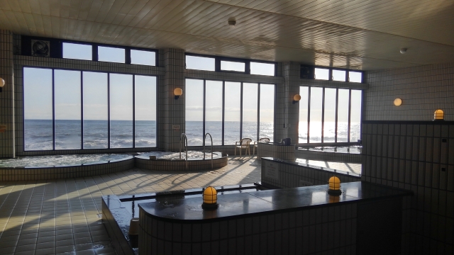 日本海が見渡せる露天風呂は絶景! 天気の良い日には、海に沈む夕日を眺めながら、露天風呂に浸かる贅沢が味わえます。 温泉はトロミがあります。 浴場自体がこぢんまりとしているので、景色ほど広々感はありません。