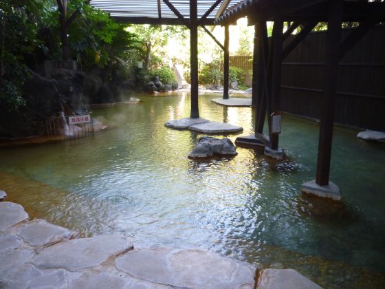 浴室、食事処、ほぐし処は2階にある。(エレベータあり) 温泉は薄緑の塩化物強塩泉で肌ににピリピリと来る。 露天の桧風呂は大変滑りやすく私が見ただけも2人が滑っていた。 露天スペースは広々としている。 施設が新しく清掃も行き届いていて大変気持ちが良い。 残念だったのは、高濃度人工炭酸泉の浴槽が狭く髪の毛などが浮いていた事だけです。 内湯・脱衣場はこじんまりとしているので、人が多いと混雑するかもしれません。