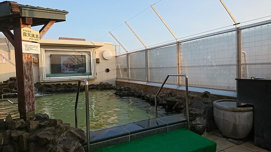 露天風呂は岩風呂と檜風呂の2つ、薄黄緑の温泉が注がれている。 温泉は加温されて41.5度位に調整されていて熱め。 壺湯は純米酒風呂となっていて、お酒は定期的に追加投入される。 施設内は所狭しと、土産物やゲーム機・ガチャポンが置かれており、ゆったり感はなく湯上がりに落ち着けない。 もう少しゆったりとした無駄な空間があれば、湯上がりに落ち着けるのだが。