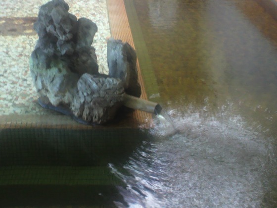 露天風呂は岩風呂と檜風呂の2つ、薄黄緑の温泉が注がれている。 温泉は加温されて41.5度位に調整されていて熱め。 壺湯は純米酒風呂となっていて、お酒は定期的に追加投入される。 施設内は所狭しと、土産物やゲーム機・ガチャポンが置かれており、ゆったり感はなく湯上がりに落ち着けない。 もう少しゆったりとした無駄な空間があれば、湯上がりに落ち着けるのだが。
