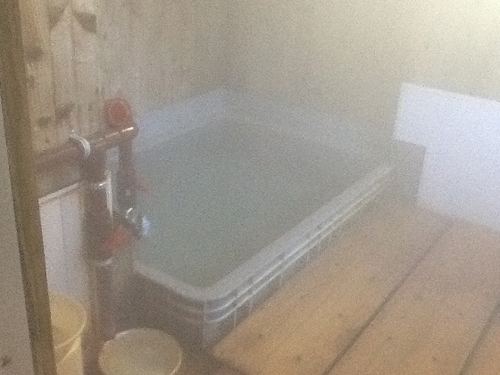 浴室が生臭い 排水溝から臭うので温泉の香りではなかった 消臭に20Kネットに入れた炭を排水溝の近くに山積みにしてるが効果はないようだ