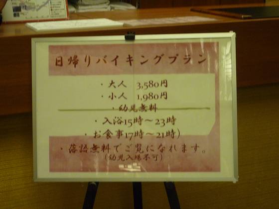 HP掲載料金は550円ですが、前回行った時(19時ぐらい)は450円でした。 お勧めは昼飯バイキングと入浴のセットで、1,500円。 首都圏在住者からは信じられないお値段です。