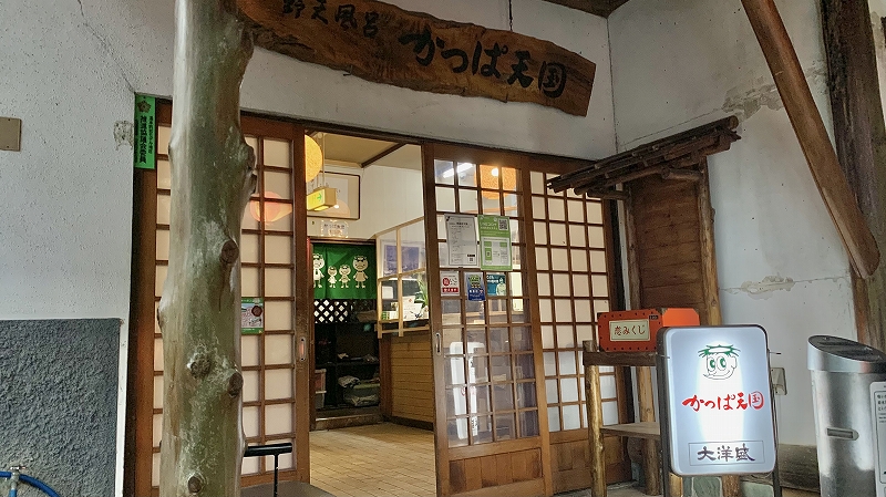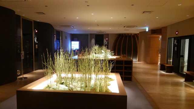 露天風呂は岩風呂と檜風呂の2つ、薄黄緑の温泉が注がれている。 温泉は加温されて41.5度位に調整されていて熱め。 壺湯は純米酒風呂となっていて、お酒は定期的に追加投入される。 施設内は所狭しと、土産物やゲーム機・ガチャポンが置かれており、ゆったり感はなく湯上がりに落ち着けない。 もう少しゆったりとした無駄な空間があれば、湯上がりに落ち着けるのだが。